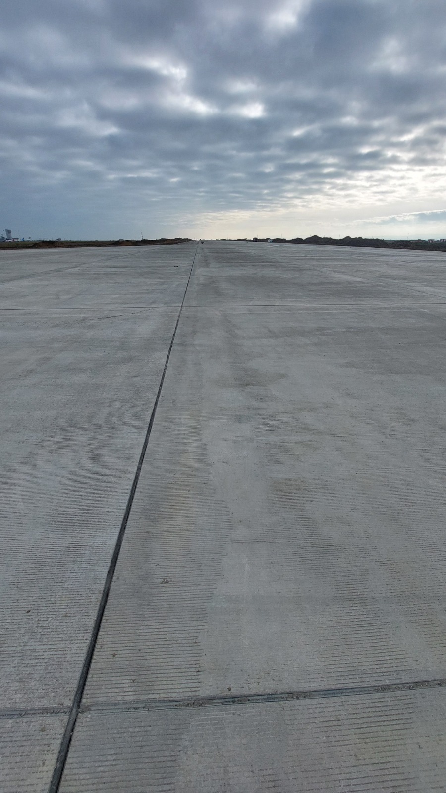 Говоря о технических характеристиках новой полосы, Алиев отметил, что она выполнена из чистого цементобетона длиной 3200 метров (общая — 3210 метров) и шириной 45 метров, с асфальтобетонными обочинами по сторонам.
