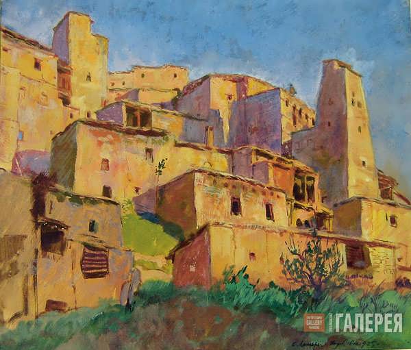 Особо привлекала художника горная Авария с ее суровой и величественной природой, со своеобразными пейзажами дальних аулов, с удивительными по внешнему облику и характерам жителями гор. В поисках наиболее ярких образов художник проникал в далекие, глухие селения аварцев. Древний Гидатль, родина легендарного Хочбара, аулы, где еще крепко держался патриархальный быт, но неотвратимо наступала новая жизнь, влекли к себе художника. Он написал несколько видов аулов Тидиб (на снимке), Урада, Орота, Гинта, Тлядаль…