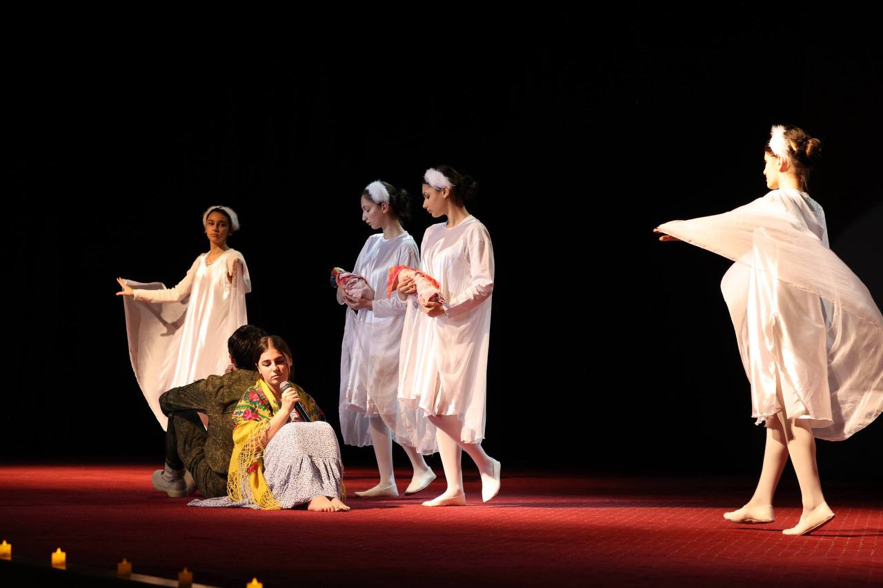 Завершилось мероприятие выступлением школьного театра Республиканского центра образования, который выступил с короткой, но пронзительной версией спектакля Валерия Капранова, написанного по мотивам первой книги «Они сражались за Родину».