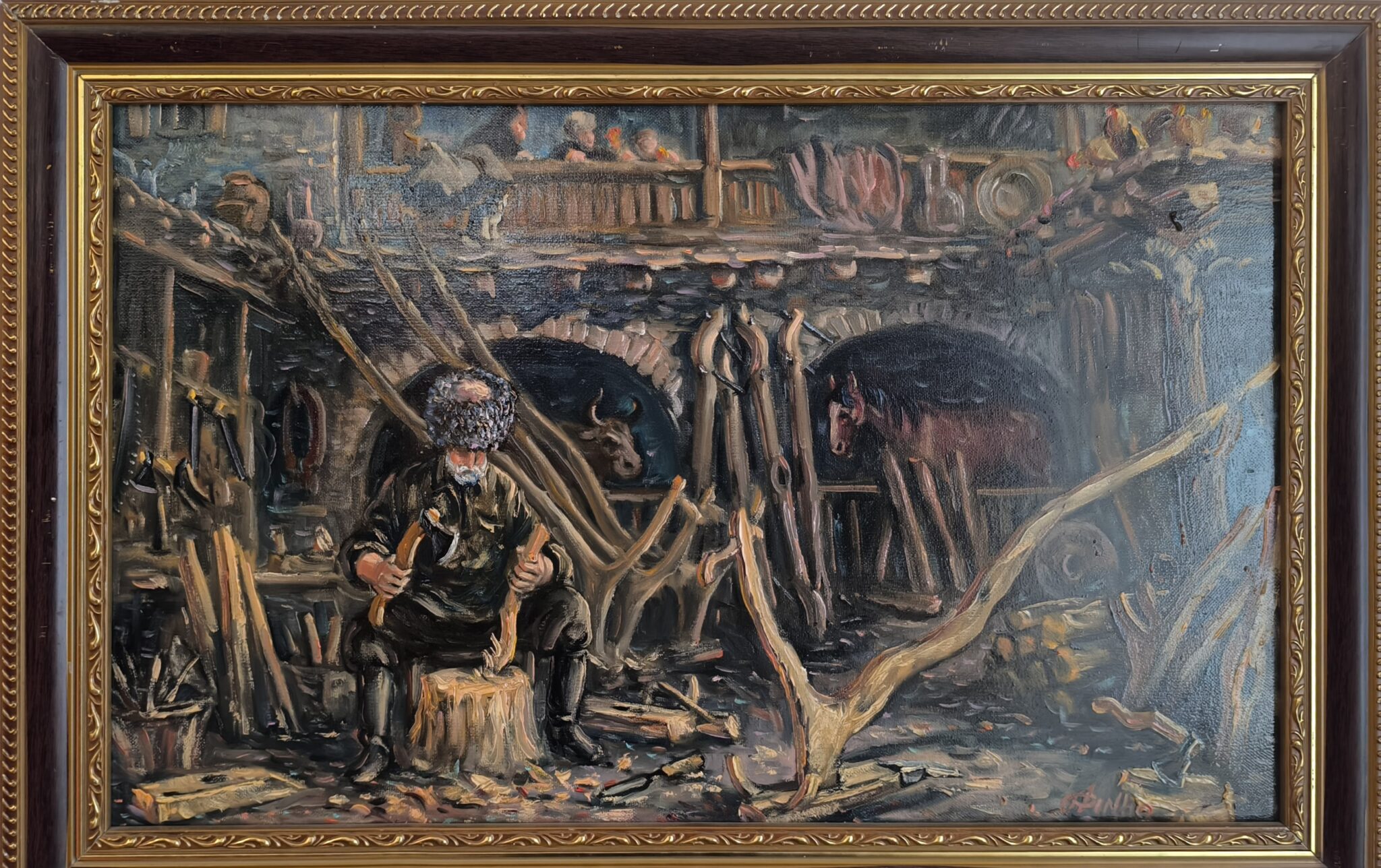 Здесь среди запаха металла и угля рождалась мужская солидарность, передавались не только ремесленные навыки, но и житейская мудрость, юмор, характер. Этот созидательный дух уловил и возвел в символ народный поэт Дагестана Р. Гамзатов, сделав кузницу метафорой закалки духа, ковки слова и несгибаемой воли целого народа. От легендарного помещения осталась лишь стена, на ее фундаменте вырос утилитарный крытый гараж. Прогресс, которому так верно служила кузница, казалось, должен был кануть в Лету, но культура – лучший хранитель. По памяти, с любовью и точностью летописца Абдула Магомедов воссоздал на холсте утраченный мир. В 2012 году он взялся за кисть, и на полотне вновь загудело пламя, полетели искры. И кажется, вот-вот послышится шутка того самого мастера…