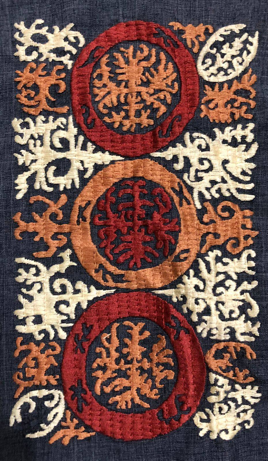 А грузинское село Шатили, эскиз которого выполнен с помощью мастихина, гуашью, плавно переходит в гобелен, может быть, отличаясь иными от почерка дагестанских умельцев высотными постройками. Картина передает настроение села, где жизнь, окруженная лесами, наполняется животворным кислородом, отличается от урбанизированного, суетного, пыльного города. Автор признается, что в основе ее художественных размышлений лежат самые острые воспоминания детства, рождающие разный, иллюзорный мир, трепетный, суровый в наивысший момент напряжения, но всегда воспевающий Дагестан. Таким, каким она его видит, таким он ей и дорог. И рассуждает о необыкновенной сердечной привязанности к родным местам, замечая, что родители, не имея к искусству отношения, тем не менее бережно отнеслись к ее увлечению творчеством.