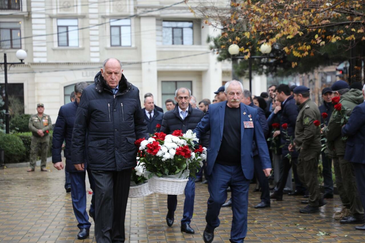 В Махачкале, в рамках торжественного мероприятия, посвящённого Дню Героев Отечества, Председатель Правительства Дагестана Абдулмуслим Абдулмуслимов вместе с участниками церемонии возложил цветы к подножию памятника Героя России, сотрудника полиции Магомеду Нурбагандову.