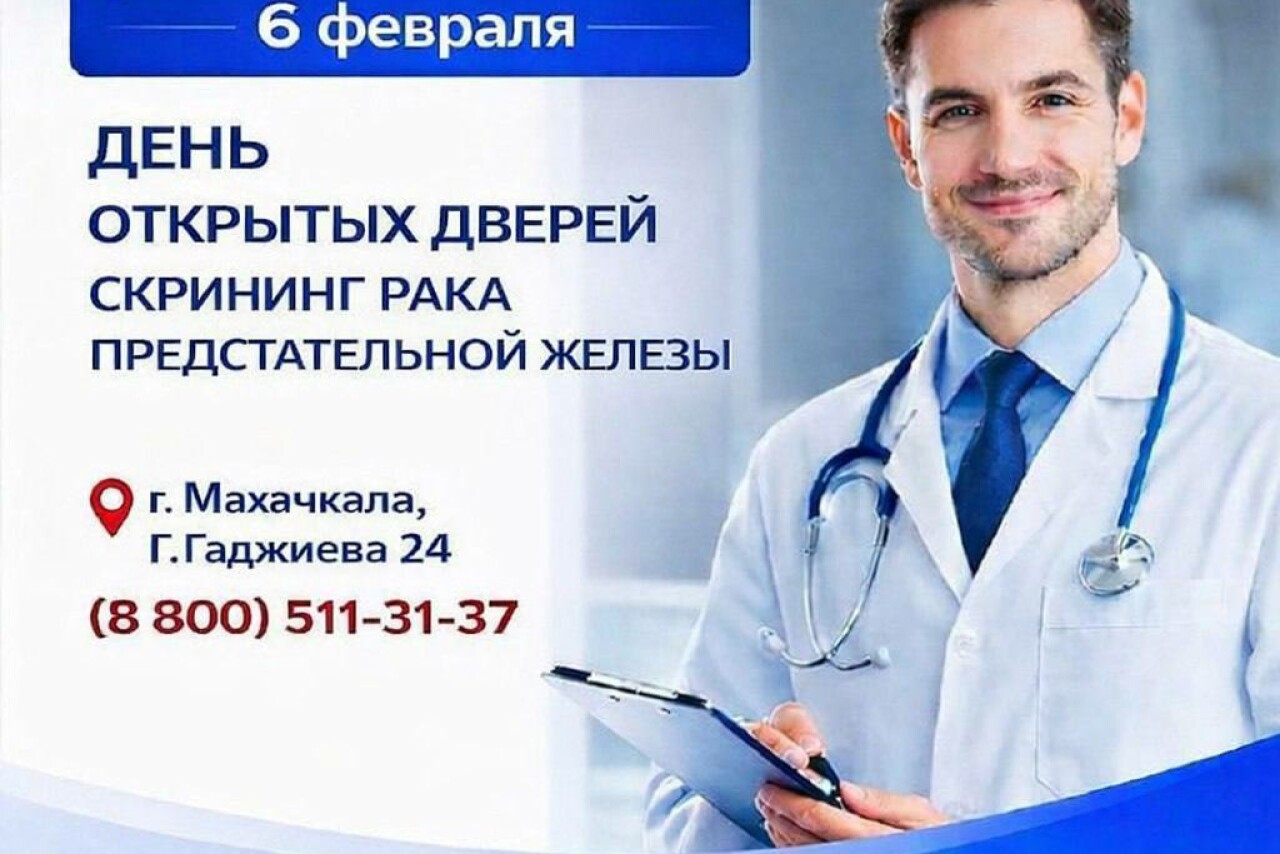 С 9:00 до 12:00 по адресу ул. Г. Гаджиева, 24 будет работать бесплатная программа скрининга рака предстательной железы.