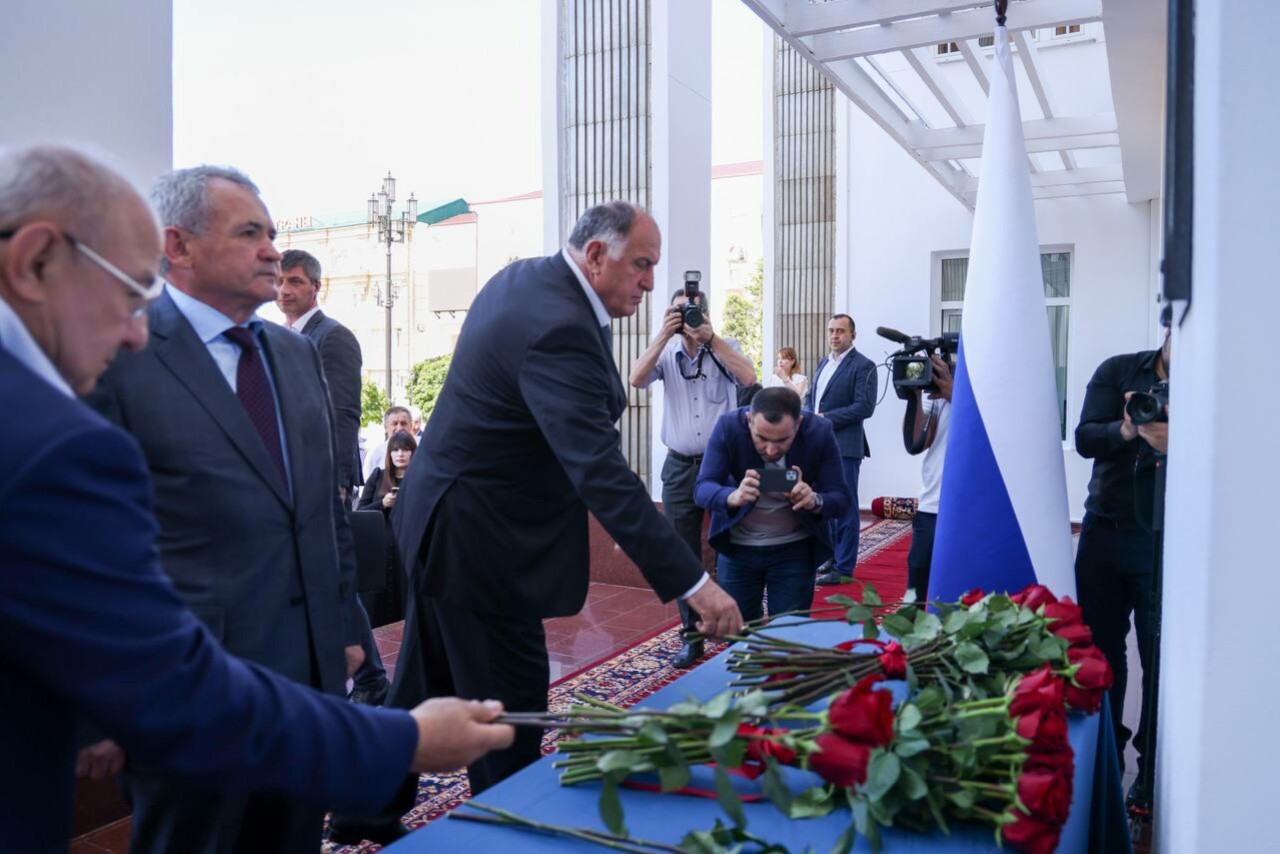 Председатель Правительства Дагестана Абдулмуслим Абдулмуслимов принял участие в церемонии торжественного открытия мемориальной плиты почетному председателю Госсовета Магомедали Магомедову.