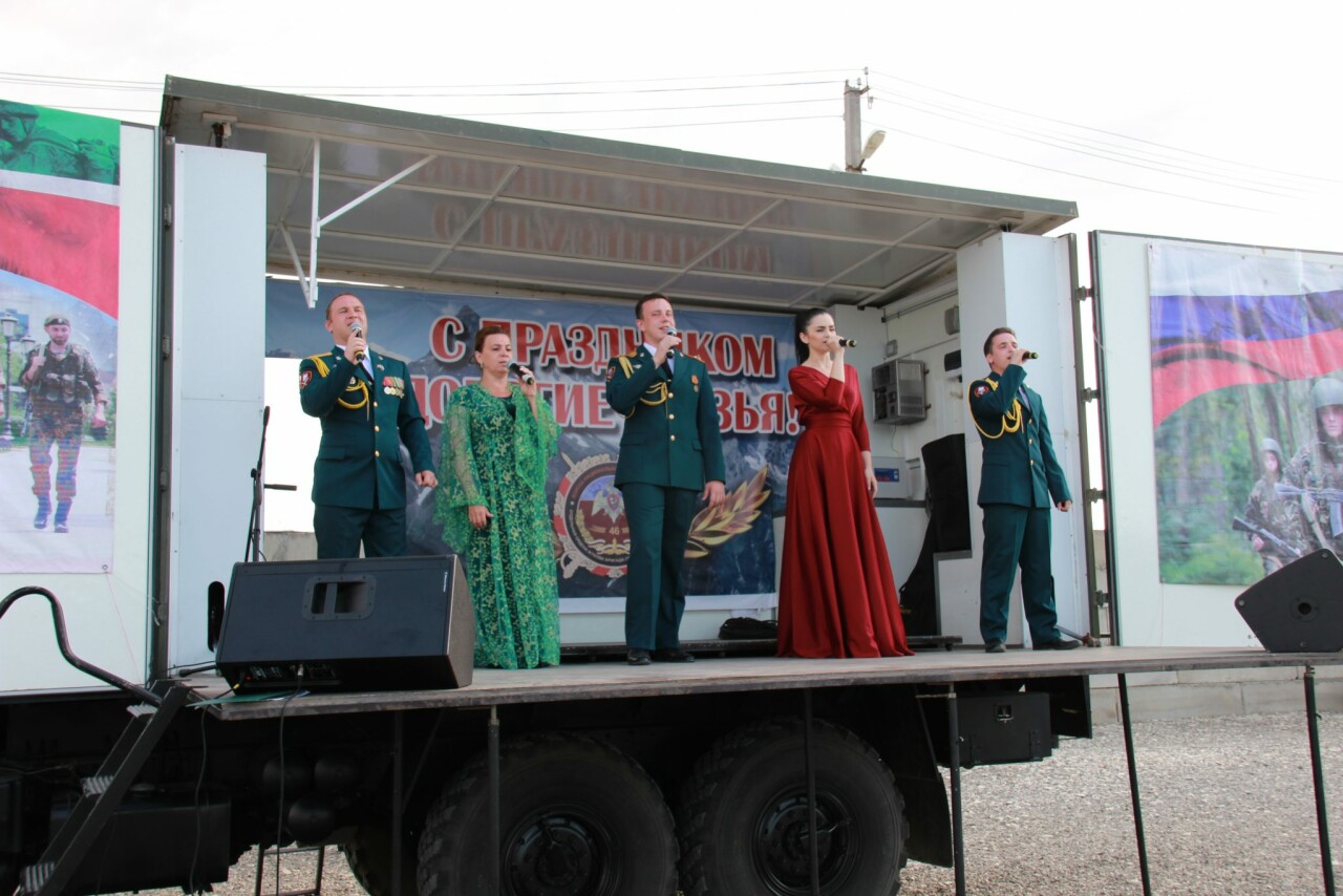 В рамках праздничных мероприятий, приуроченных к Дню России, для военнослужащих и сотрудников, выполняющих в задачи в составе Объединенной группировки войск (сил), с концертной программой выступил коллектив ансамбля песни и пляски Северо-Кавказского округа Росгвардии.