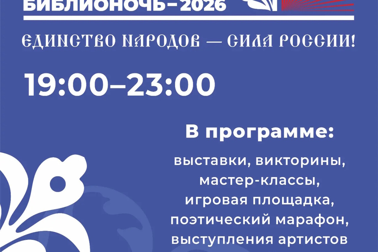 Всероссийская акция «Библионочь-2026» состоится 18 апреля уже в 15-й раз. В Год единства народов России главная тема акции — «Единство народов — сила России!».
