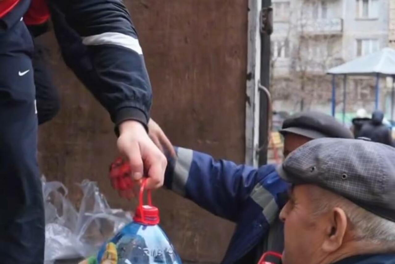 Волонтёры доставляют питьевую воду по заявкам жителей в разные локации.