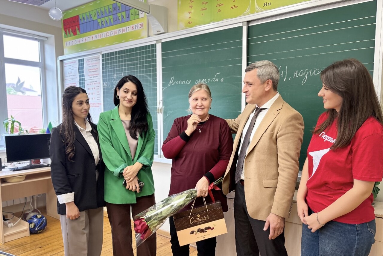 В преддверии Дня учителя помощник депутата городского Собрания «город Дербент» Баба Кулиев вместе с активистами партии «Единая Россия» и «Движения Первых» посетили Гимназию № 1, чтобы поздравить Веру Петровну Туровец, мать сыновей, участвующих в СВО. Это мероприятие стало частью празднования, посвящённого людям, посвятившим себя благородному делу образования и воспитания детей.