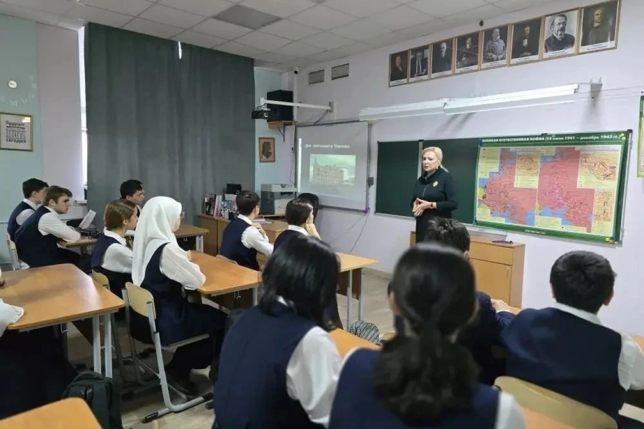 Особое внимание в беседе было уделено подвигам героев-земляков, сражавшихся под Сталинградом, – легендарного пулеметчика Ханпаши Нурадилова и прославленного летчика-аса Амет-Хана Султана. Их примеры наглядно показали, как в годы войны весь многонациональный советский народ, независимо от происхождения и веры, единым фронтом встал на защиту Родины.