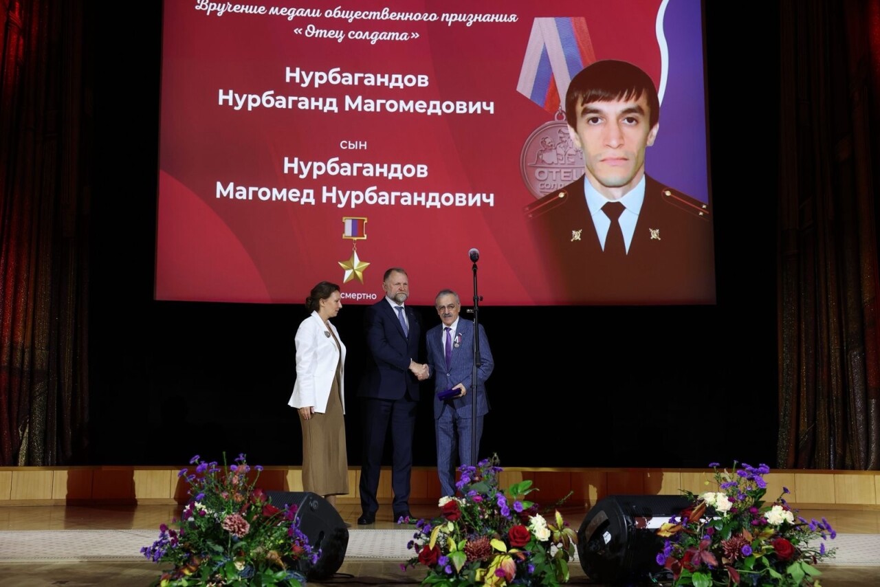 Медаль «Отец солдата» была вручена 21 отцу в двух номинациях: «За личный пример» и «За воспитание защитника Отечества». Среди награжденных — Нурбаганд Нурбагандов, отец Героя России Магомеда Нурбагандова.