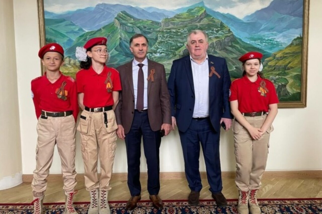 Заместитель Председателя НС РД Камил Давдиев и Председатель Комитета парламента по культуре, делам молодежи, спорту и туризму Мурат Пайзулаев приняли участие в всероссийской акции «Георгиевская ленточка», которая проходит в Доме Правительства Дагестана.
