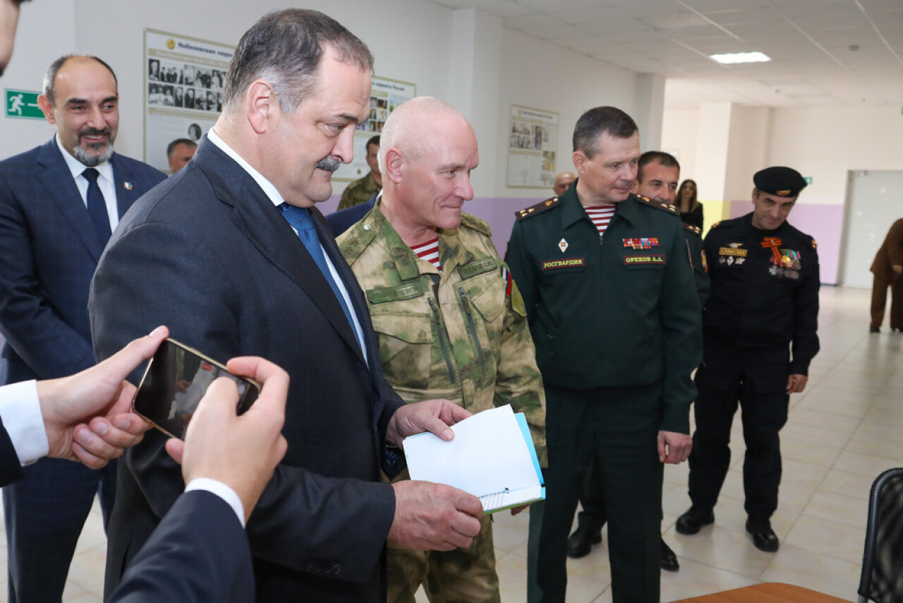 Глава Дагестана Сергей Меликов и командующий Северо-Кавказским округом войск национальной гвардии Российской Федерации генерал-полковник Сергей Захаров приняли участие в открытии профильного класса Росгвардии на базе Республиканского центра образования в Каспийске.