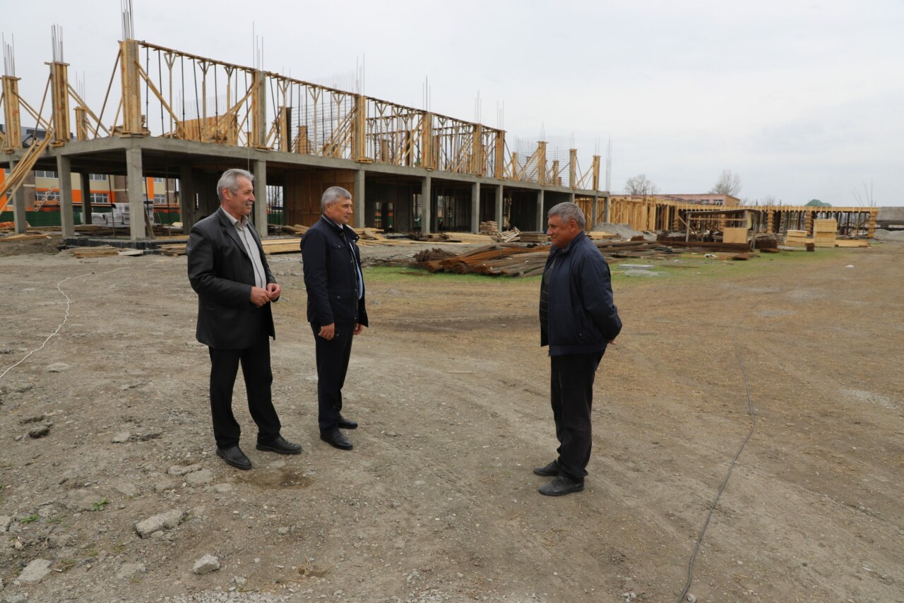 Во время проверки глава района убедился, что каркас здания вырос на пустыре рядом со школой за несколько месяцев, сейчас возводится второй этаж, а всего их будет три.