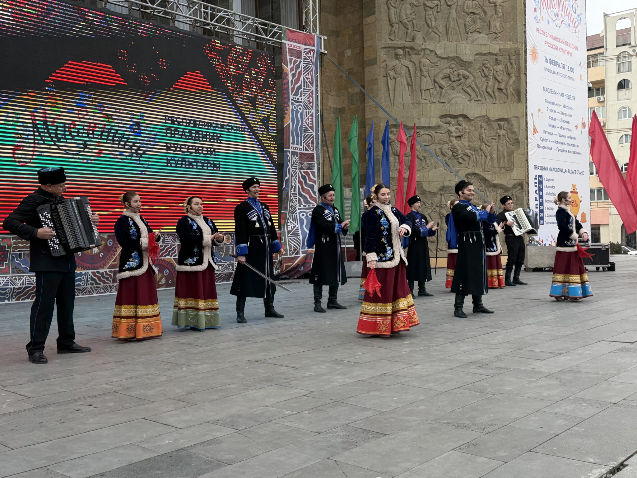 В Махачкале 16 февраля с размахом отметили Республиканский праздник русской культуры «Масленица». Площадка Русского театра превратилась в центр притяжения народной культуры.