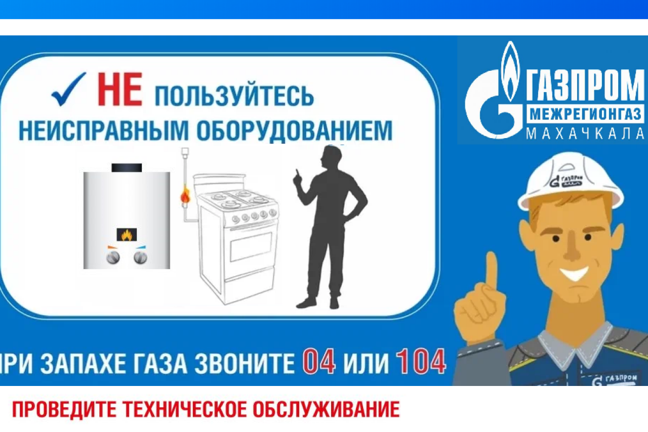 ООО «Газпром межрегионгаз Махачкала» напоминает, что отсутствие договора о техническом обслуживании (ТО ВДГО) – основание для отключения газа.