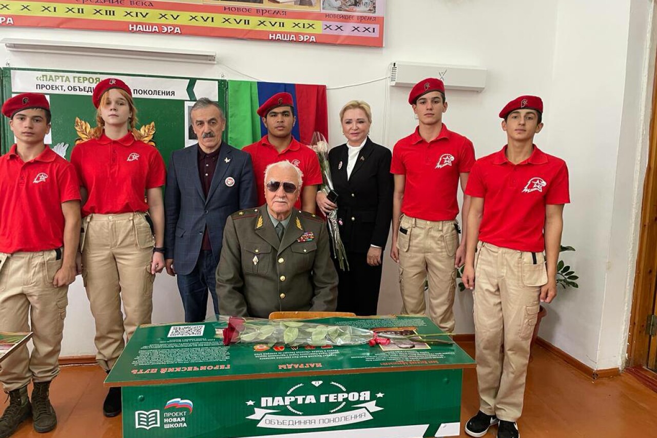 Накануне региональный координатор партийного проекта «Новая школа», Председатель комитета Народного Собрания РД по образованию и науке Елена Павлюченко вместе с депутатом ГосДумы ФС РФ Нурбагандом Нурбагандовым и генералом-майором Германом Кириленко открыли в лицее №2 г. Кизляра «Парты Героев», посвящённые выпускнику школы, Герою Советского Союза Петру Крутову и герою России лейтенанту полиции Магомеду Нурбагандову.