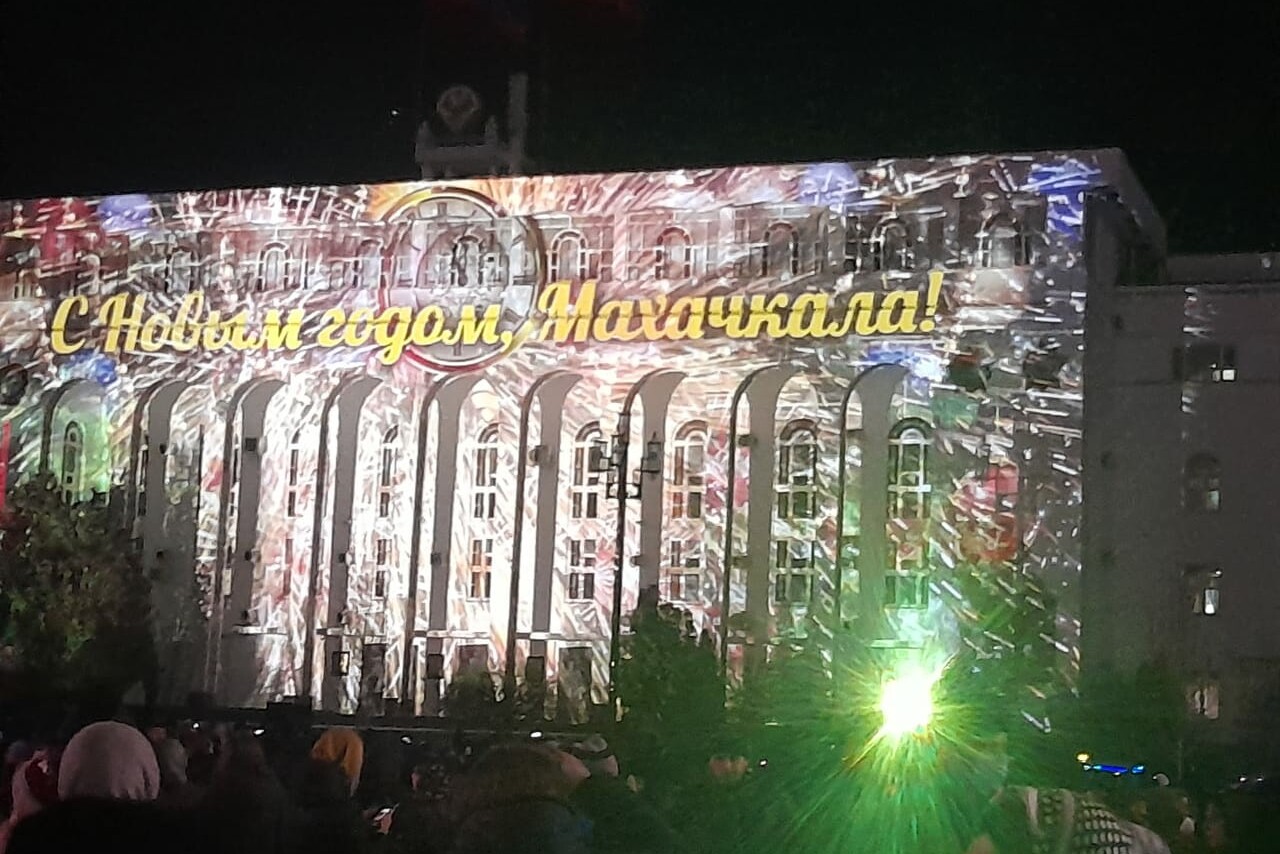 В Махачкале на главной площади города для жителей и гостей столицы транслируется мудьтимедийное объемное представление на тему Нового года.