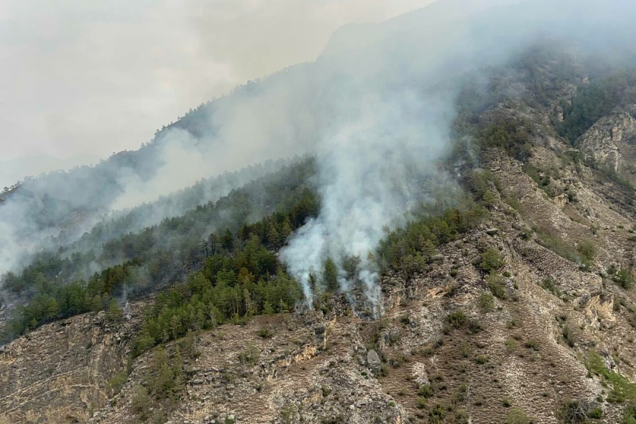 Очаг возгорания находится в 5,2 км от села Унцукуль в Унцукульском районе на склоне горы, в труднодоступном месте.