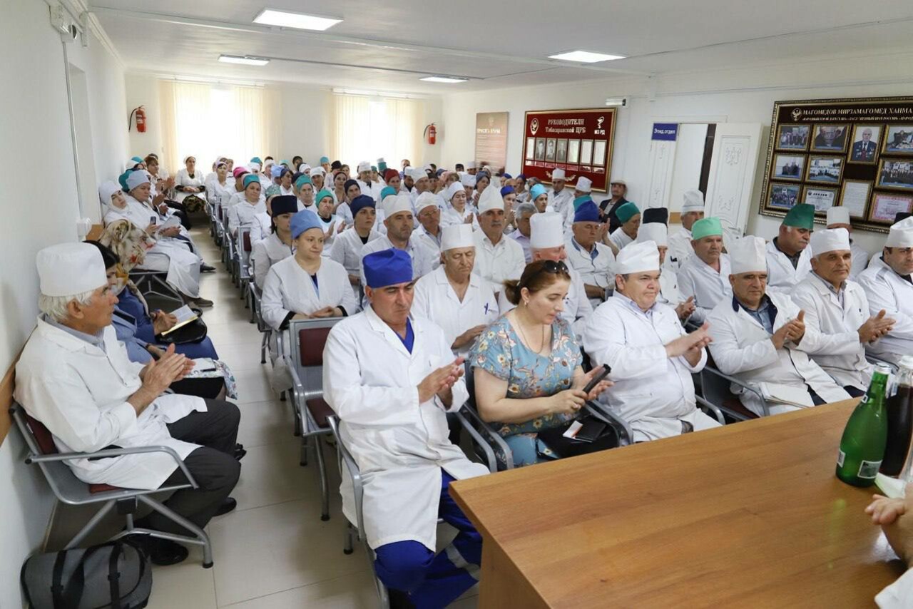 Главный врач Табасаранской ЦРБ Абсеретдин Мирзабеков, в свою очередь, поблагодарил сотрудников и отметил, что работа медперсонала находится на хорошем уровне. Он также сообщил о кардинальных изменениях в сфере здравоохранения района за последние годы, включая проведение капремонта во всех корпусах ЦРБ, оснащение врачебных кабинетов новым медоборудованием и строительство ФАПов и врачебных амбулаторий.