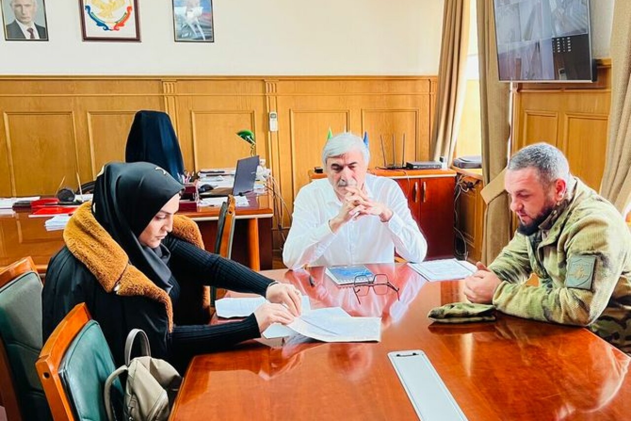 В администрации Новолакского района состоялась встреча главы муниципалитета Мамати Гамзатова с участником СВО Русланом Рамазановым и его супругой Динарой.