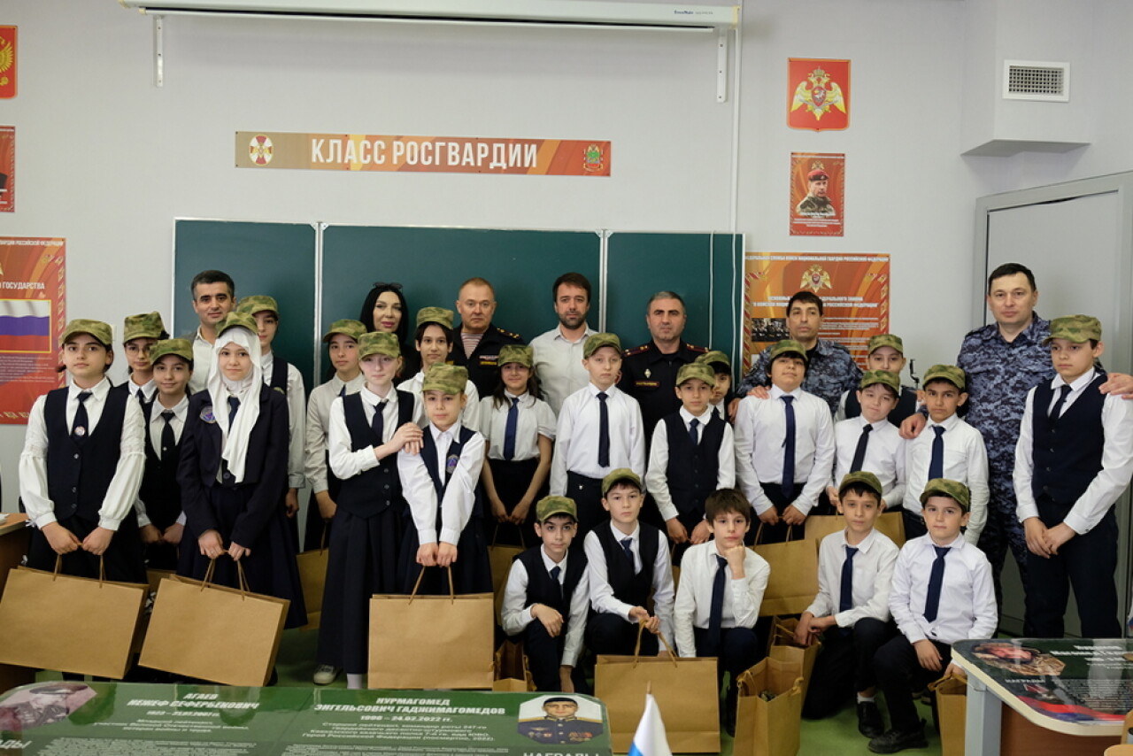 В рамках 10-летия Росгвардии и 215-й годовщины образования войск правопорядка начальник Управления Росгвардии по Республике Дагестан полковник Вадим Кузнецов встретился с учащимися профильных классов каспийской гимназии №12 им. А. Аджиева и Республиканского центра образования им. И. Ханбалаева.