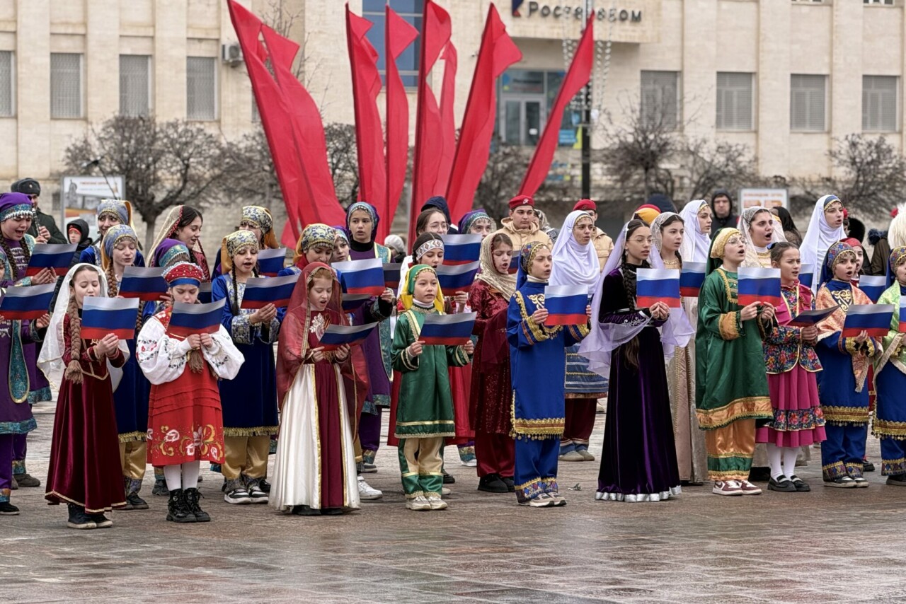 От имени главы города собравшихся поздравила его заместитель Эмилия Раджабова, отметив, что праздник символизирует единство народа и поддержку защитников Родины. Мероприятие также было приурочено к Году народного единства: дети вышли на площадь в национальных костюмах, представляя многонациональную культуру республики.