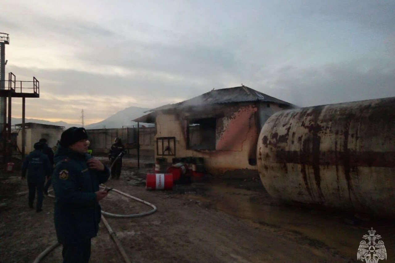 В поселке Новый Хушет под Махачкалой произошел пожар на нефтебазе. Загорелась цистерна со сжиженным газом. Сигнал о возгорании поступил в МЧС сегодня в 16:24. Через час огонь удалось полностью потушить.