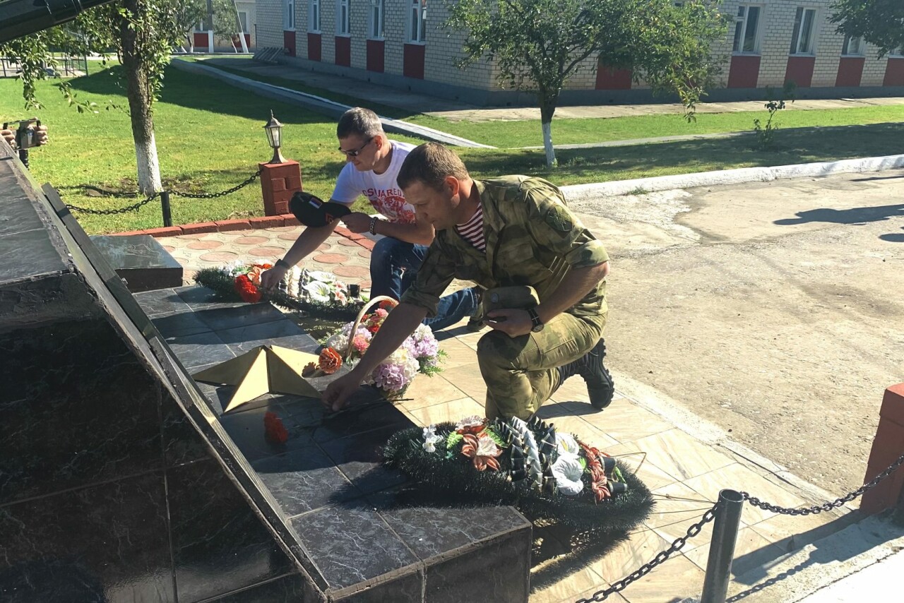 Собравшиеся почтили минутой молчания память бойцов внутренних войск, погибших от рук боевиков, и возложили цветы к памятнику и стеле.