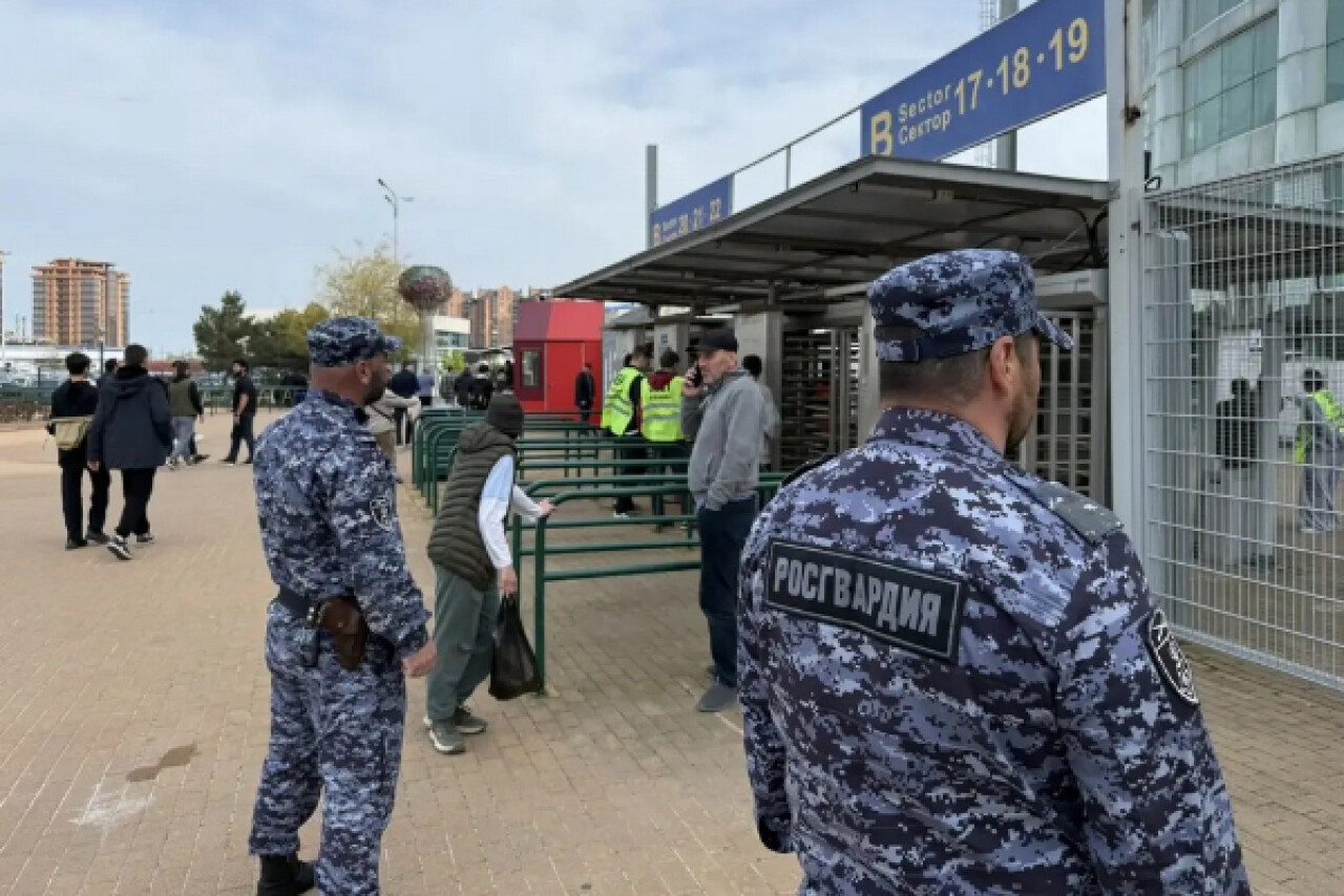 Перед игрой инженерные подразделения Росгвардии и кинологи МВД обследовали трибуны и прилегающую территорию на предмет взрывоопасных предметов. Также росгвардейцы совместно с коллегами из МВД обеспечили пропускной режим и патрулирование территории вокруг спорткомплекса.