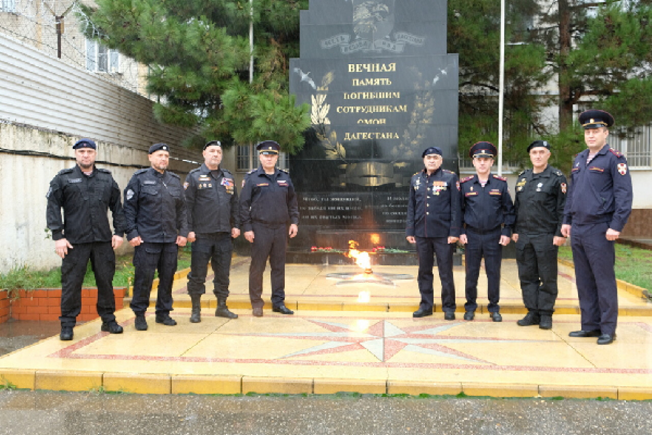 Перед началом торжественной части участники возложили цветы к мемориалу, посвященному погибшим сотрудникам дагестанского ОМОН, который находится на территории подразделения.