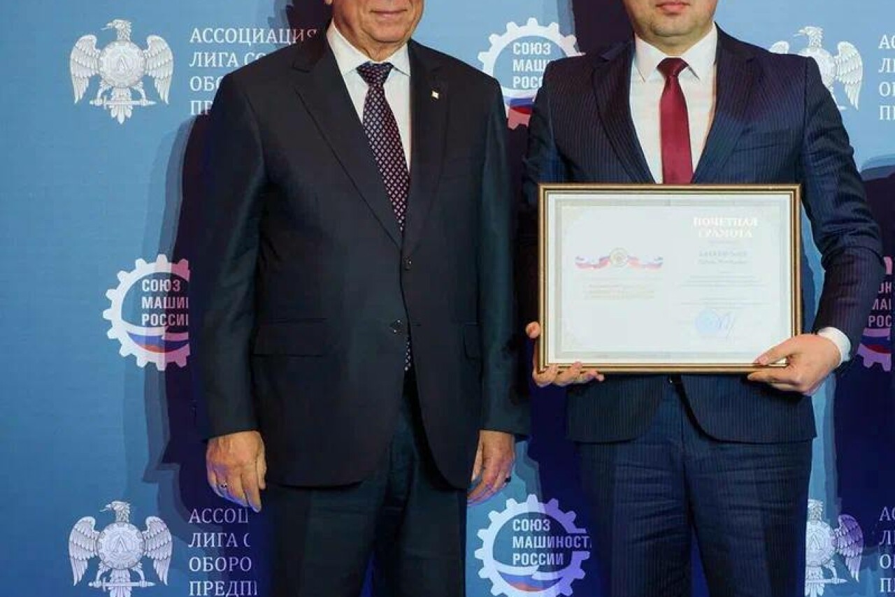 Руководитель Ростеха и председатель Союза машиностроителей России Сергей Чемезов вручил награду ректору Дагестанского государственного технического университета Назиму Баламирзоеву на торжественной церемонии в Москве.