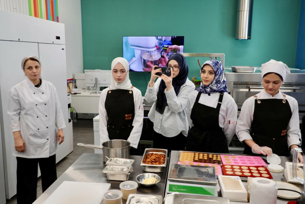 В колледже, функционирующем в рамках федерального проекта «Профессионалитет», созданы современные образовательные зоны, включая кондитерский цех, учебную кухню и площадку для отработки навыков ресторанного сервиса.