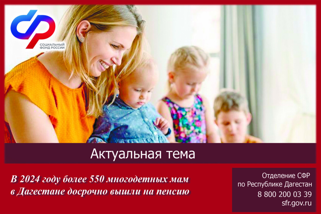 С начала текущего года пенсия была назначена более 550 дагестанским мамам с тремя и более детьми.