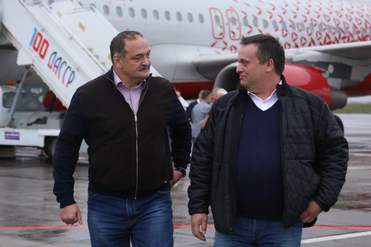 В Дагестан с рабочей поездкой прибыл губернатор Новгородской области Андрей Никитин. В махачкалинском аэропорту гостя встретил врио Главы Дагестана Сергей Меликов, сообщает пресс-служба Главы РД.