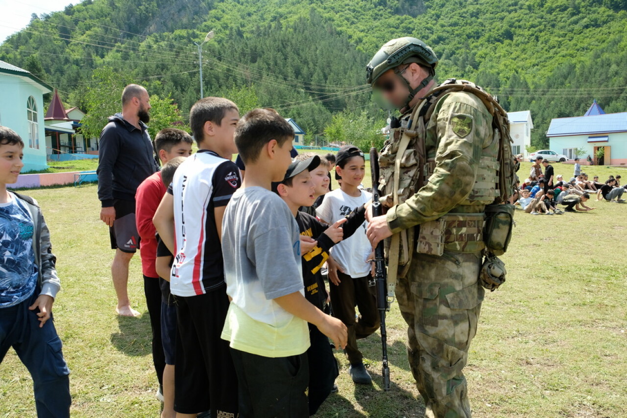 В рамках всероссийской акции «Каникулы с Росгвардией» бойцы транспортного ОМОН «Ягуар» территориального управления ведомства организовали спортивное мероприятие для детей, отдыхающих в детском спортивно-оздоровительном лагере «Каскад» в Гунибском районе республики.