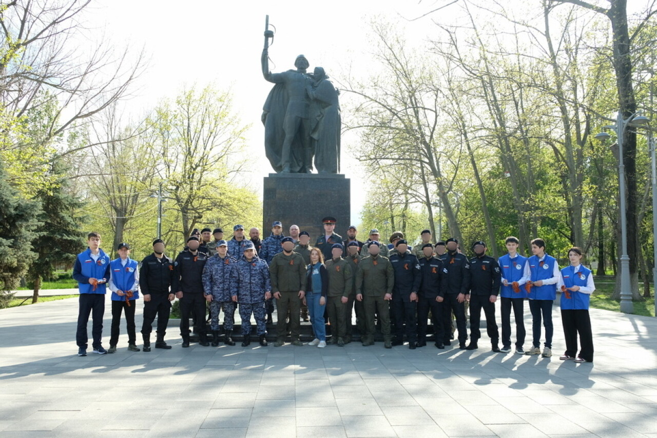 Сотрудники и военнослужащие Управления Росгвардии по Республике Дагестан и махачкалинского соединения присоединились к патриотической акции, которая прошла у памятника Воину-освободителю в парке им. Ленинского комсомола.