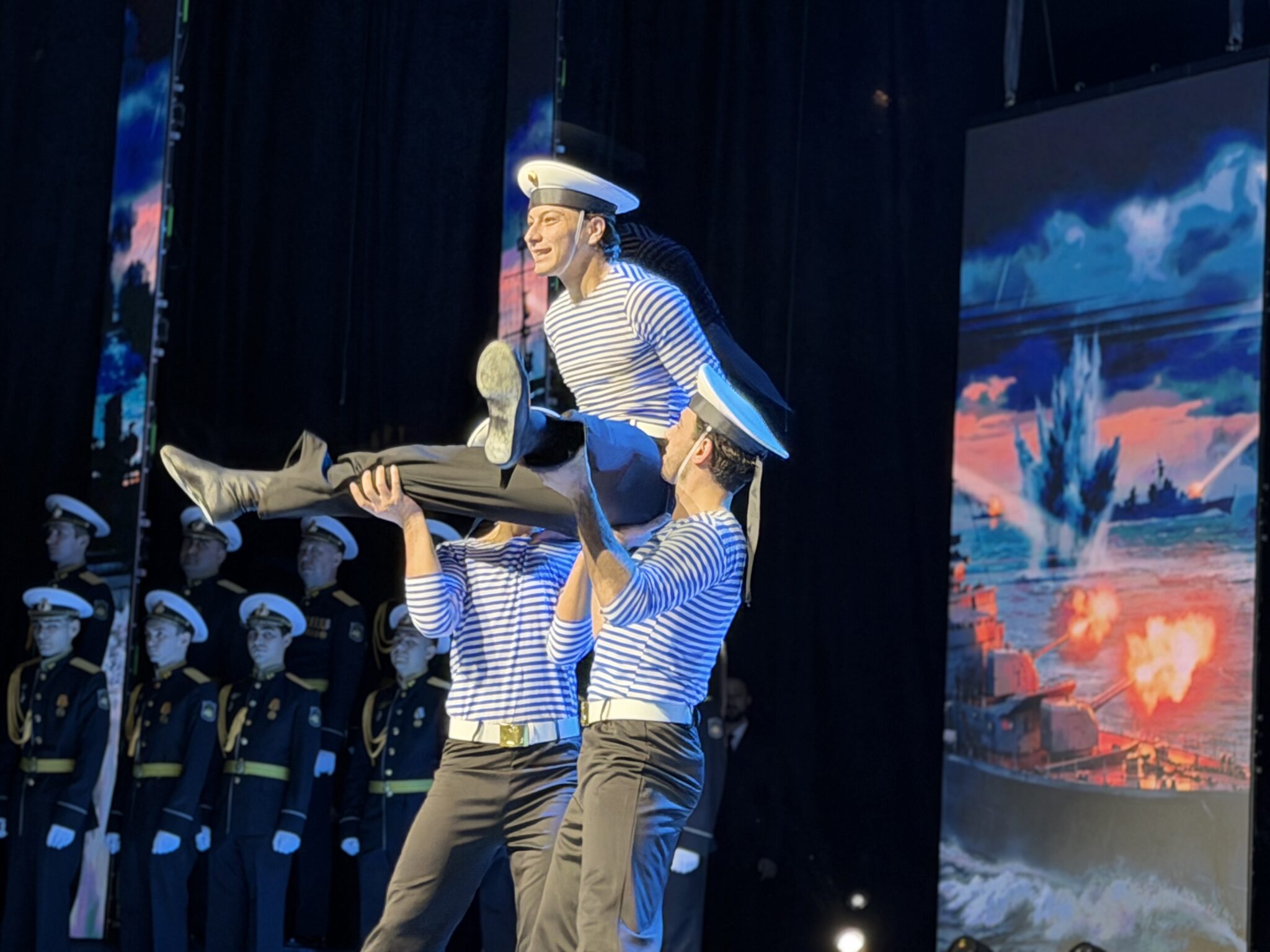 Со сцены звучали поздравления и слова признательности в адрес защитников Отечества. Для гостей выступили творческие коллективы республики. В программе приняли участие военный оркестр Краснознаменной Каспийской флотилии и солисты Дагестанской государственной филармонии. Зрителям также подарили свои номера ансамбли «Геба» и «Даглар», а также детские балетные студии.