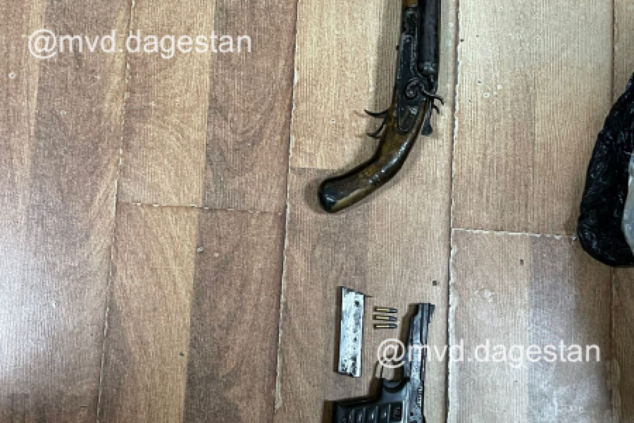 В ходе обследования домовладения 71-летнего жителя Кичигамри Сергокалинского района в рамках операции «Оружие», сотрудники уголовного розыска обнаружили и изъяли обрез гладкоствольного ружья, самодельный пистолет схожий с пистолетом Макарова и 9 патронов.
