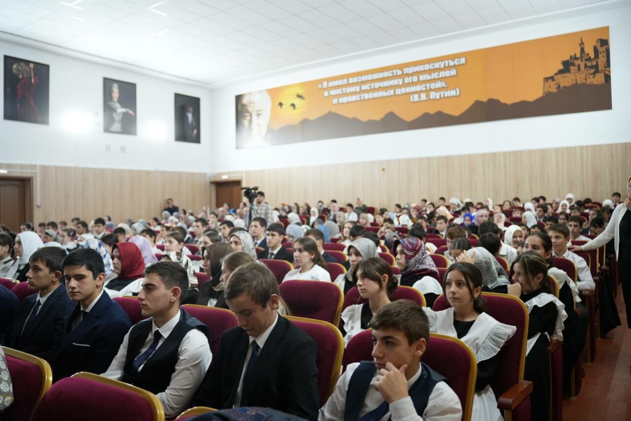 Аминат Абужанатова обратилась к учащимся с призывом помнить о героях и ценить мирную жизнь: «Помните, какой ценой она завоевана».