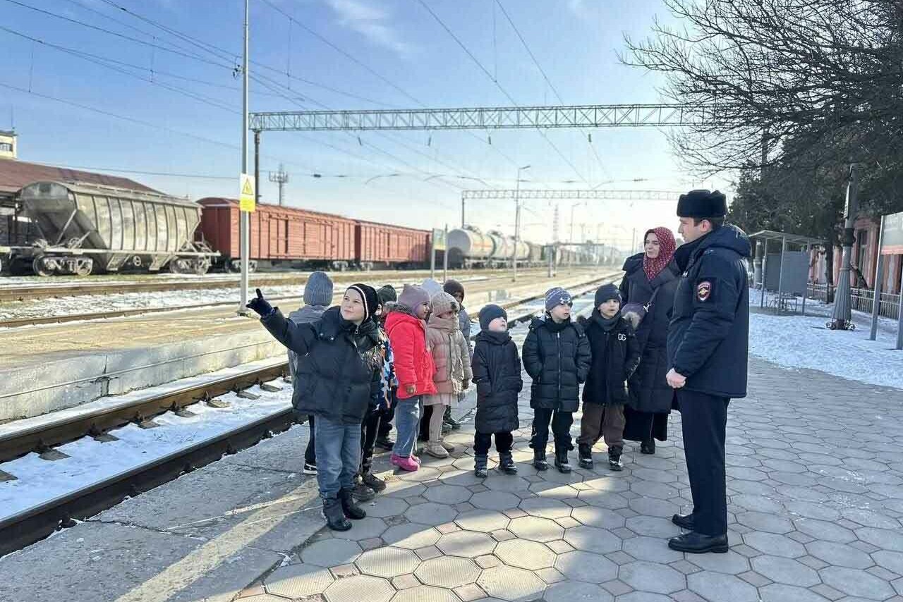 Сотрудники транспортной полиции линейного отдела на станции Хасавюрт организовали для воспитанников детского сада «Соколенок» ознакомительную экскурсию на железнодорожную станцию.
