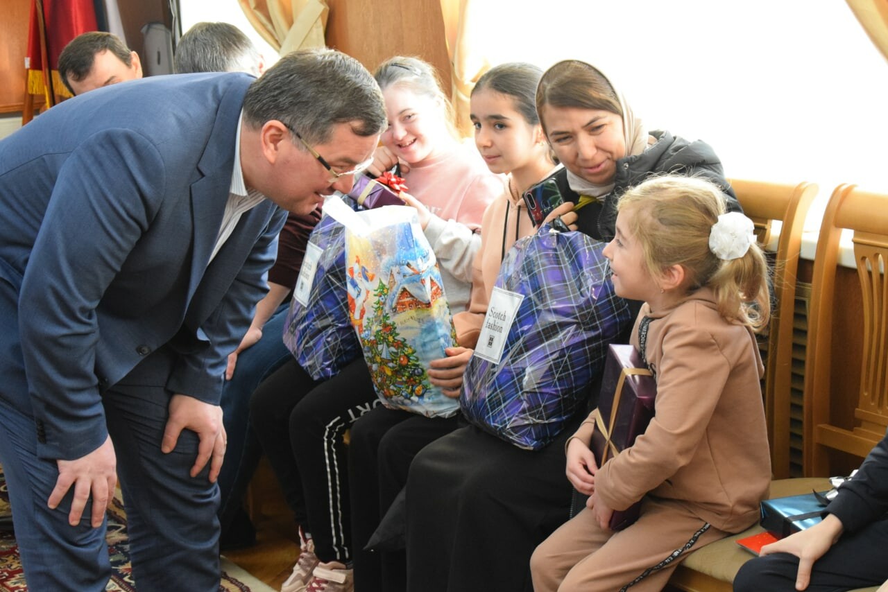 Абдуллагь из Карабудахкента и Марьям из Агачаула давно мечтали о гаджетах, а Нурьяна и Гёзель хотели получить на новый год смартфон. Магомед Магомедов вместе с Махмудом Амиралиевым, главой муниципалитета, вручили детям планшеты, телефоны и подарки со сладостями.