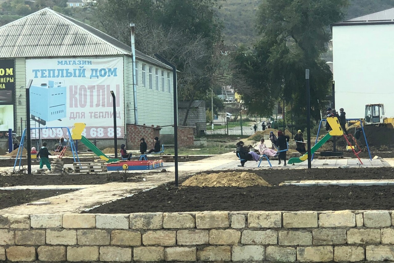 В с. Уллубийаул по ул. Ширавова также продолжаются работы по благоустройству общественной территории площадью 1100 кв.м. На эти работы предусмотрены средства в сумме 4,5 млн рублей.