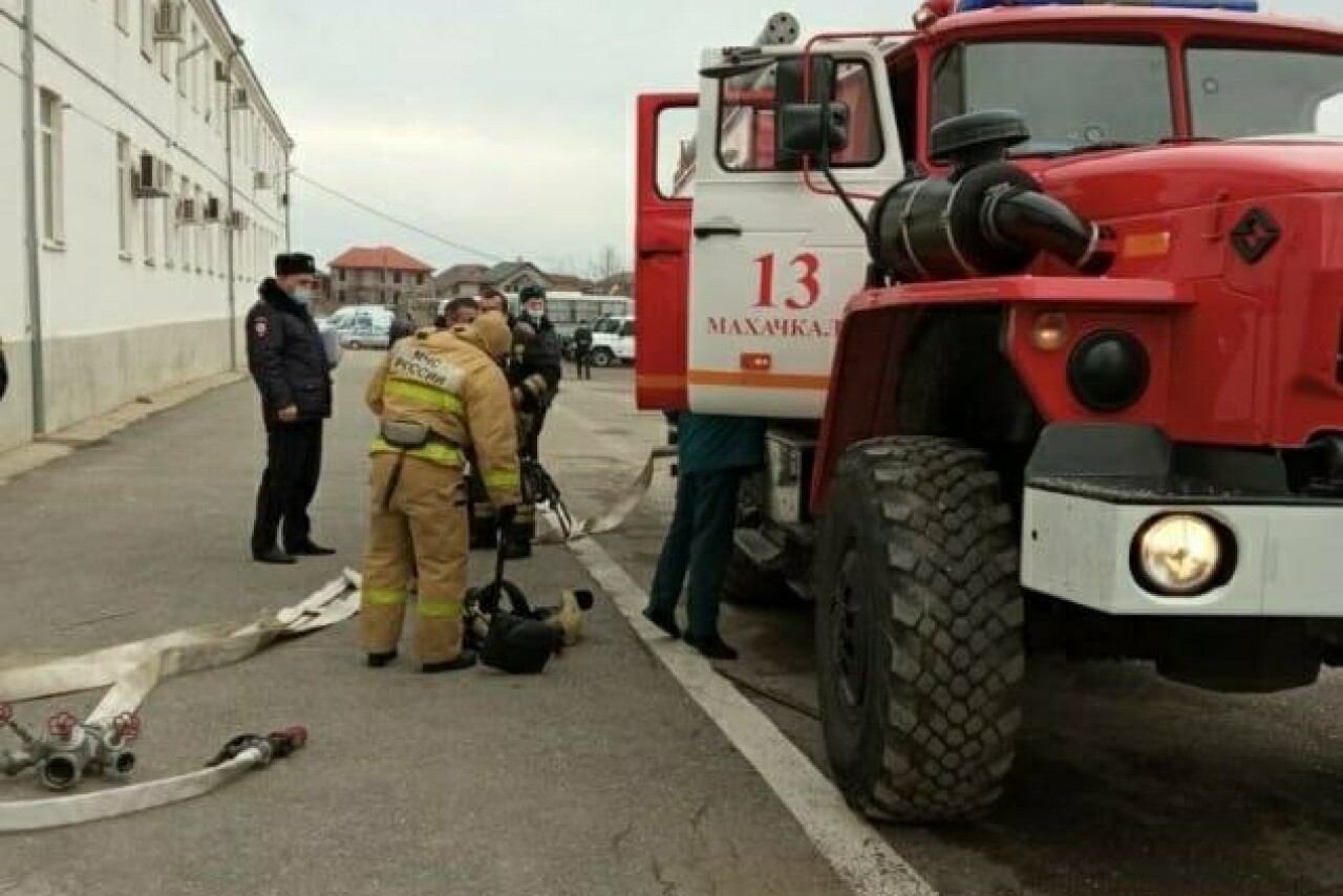 Сотрудники МЧС провели пожарно-тактические учения вместе с работниками 1 полка по охране объектов УМВД России по г.Махачкала.