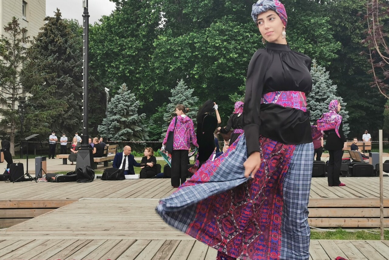 Дефиле эксклюзивных платков, одежды и аксессуаров в стиле этно состоялось вчера на главной площади столицы республики в рамках фестиваля «Праздник выходного дня».