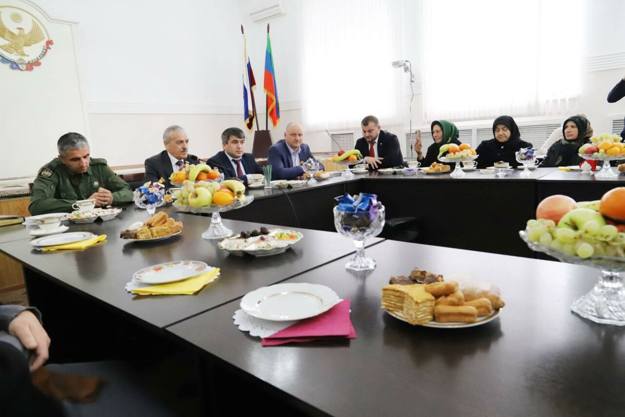 Встреча прошла в зале районной администрации при участии главы муниципалитета Магомеда Курбанова. Как было отмечено, из Табасаранского района в СВО участвуют свыше 4 тысяч военнослужащих. Особый статус имеют 31 мать, проводившая на фронт троих и более сыновей.