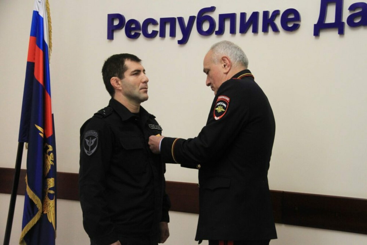 Старший оперуполномоченный ОСН «Гром» МВД по Республике Дагестан старший лейтенант полиции Магомедхан Гаджимагомедов спас пять туристов, которых во время спортивного сплава на рафте по горной реке стало бесконтрольно уносить быстрым течением. Полицейский бросился на помощь людям. Однако бурное течение и болотистый берег не позволили ему вплавь добраться до терпящих бедствие. Тогда он сначала на велосипеде, а затем на попутном транспорте обогнал рафт, бросился в реку и сумел направить его к берегу.