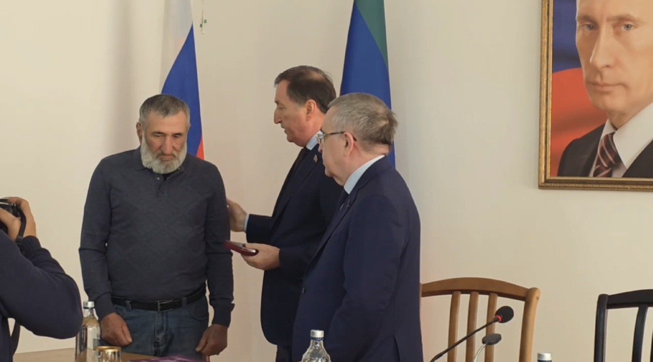 Предваряя повестку заседания, Заур Аскендеров передал Орден Мужества погибшего участника специальной военной операции Магомеднура Гаджиева его отцу Газимагомеду Гаджиеву.