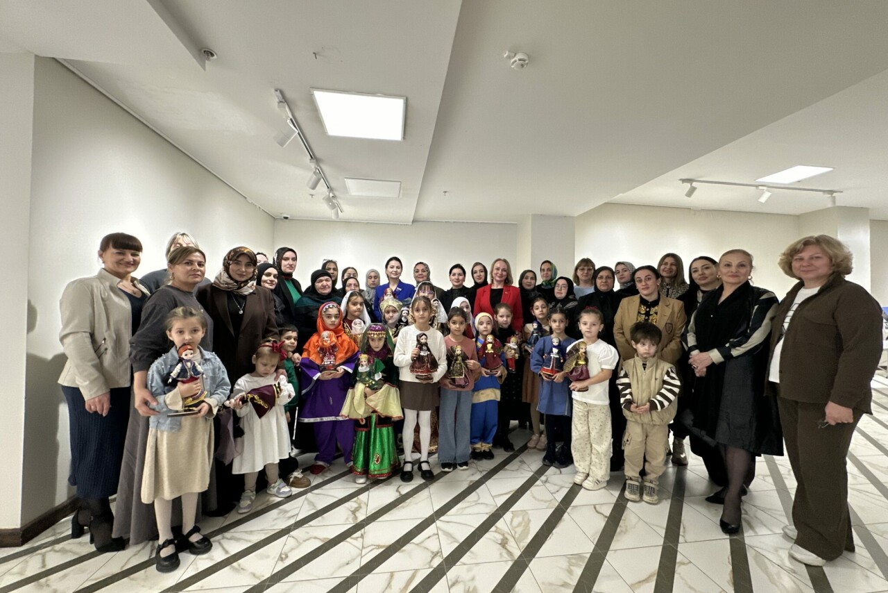 Дети из семей мобилизованных рассказали о своей малой Родине и культуре своего народа. В завершение этой части программы каждая девочка получила в подарок от активисток женского движения авторскую куклу, что вызвало бурю восторга и положительных эмоций.
