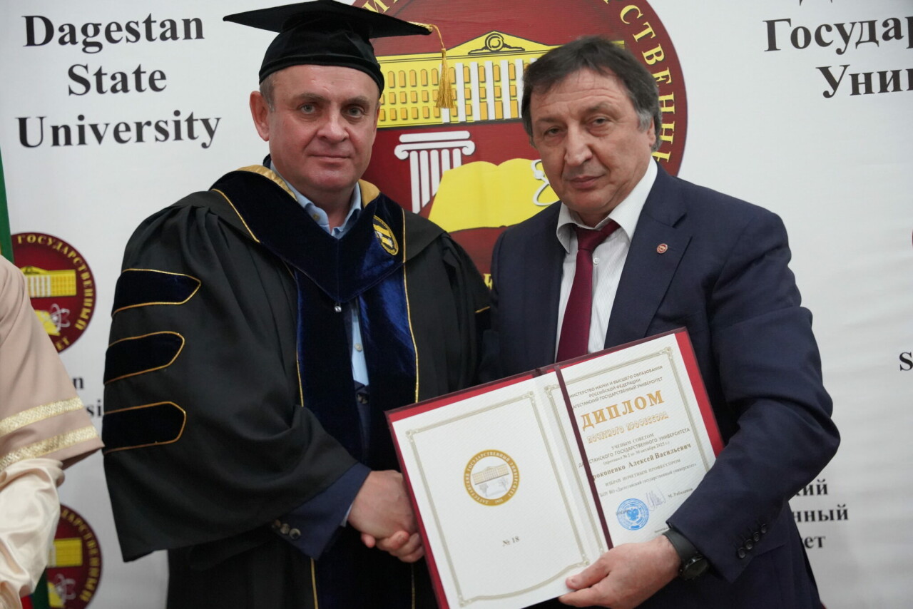 В Дагестанском государственном университете прошло торжественное заседание Ученого совета, на котором звание почетного профессора было вручено Алексею Васильевичу Прокопенко, руководителю группы компаний «Ромекс», Заслуженному строителю России и кандидату технических наук.