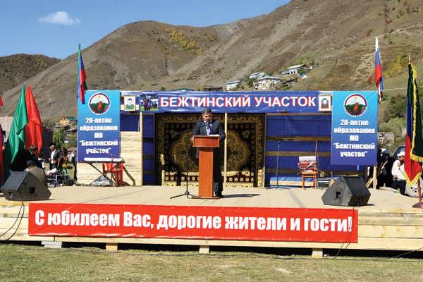 Руководитель МО обратился к собравшимся и поблагодарил гостей за участие в празднике: – Отправной точкой в становлении Бежтинского участка, — сказал он, — стало подписание 21 октября 1991 года постановления Верховного Совета Дагестанской ССР. С тех пор прошло 20 лет. Сегодня на территории участка живут более 9930 человек представителей бежтинской, гунзибской и дидойской этнических групп аварской национальности. Бежтинский участок является примером дружбы и национального единства республики.